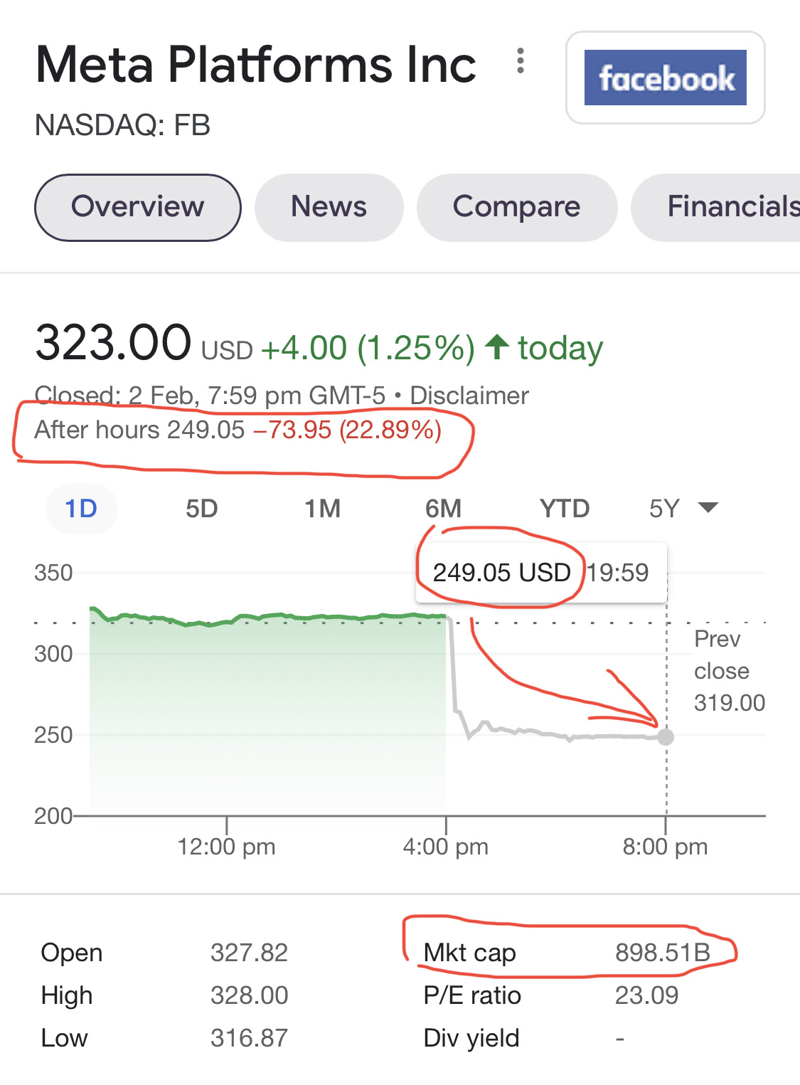It have dropped about -23% pre-market to $249 near to pre-covid price. With a $898 billion market capitalization and about $30-36 billion net income annually.