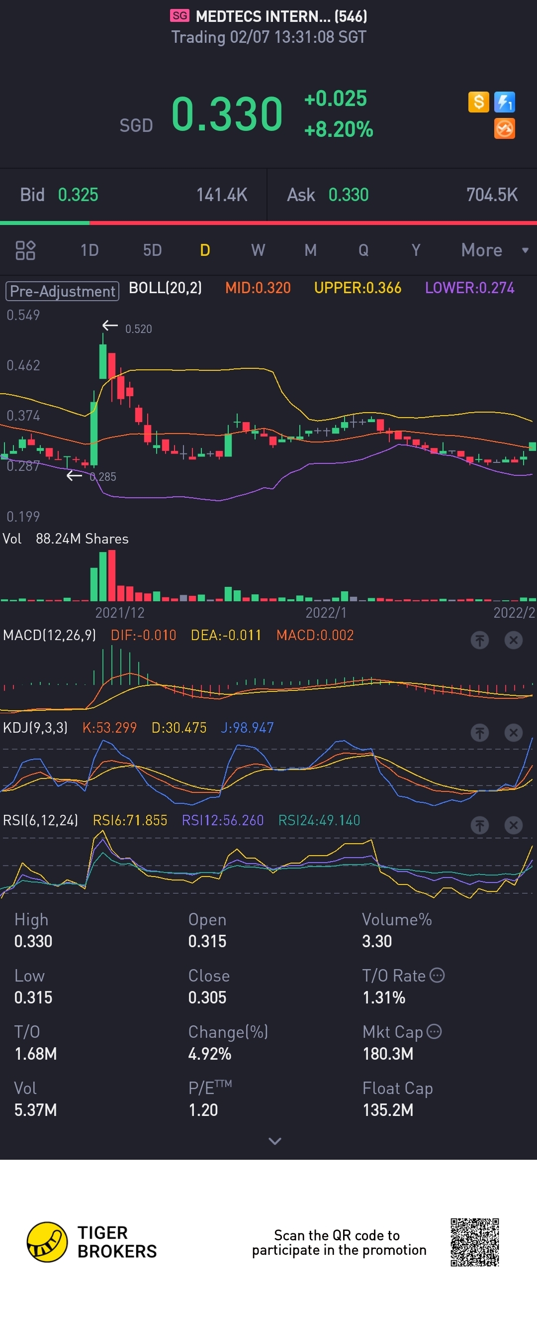 $MEDTECS INTERNATIONAL CORP LTD(546.SI)$oiii why last week nv let me filled up... and today u up liao! [Facepalm]