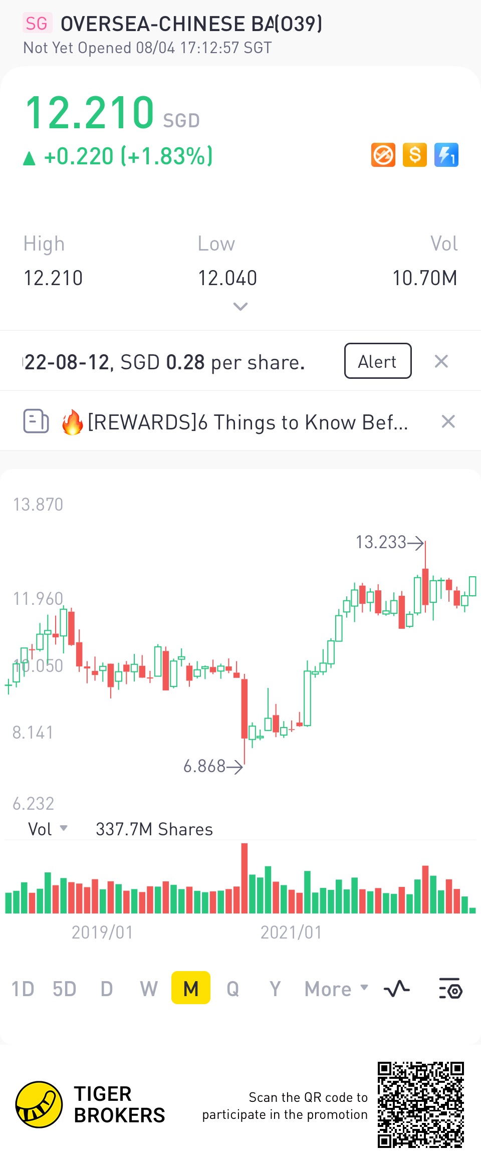 $OVERSEA-CHINESE BANKING CORP(O39.SI)$Gaining momentum. This is a good stock to keep long as generation wealth
