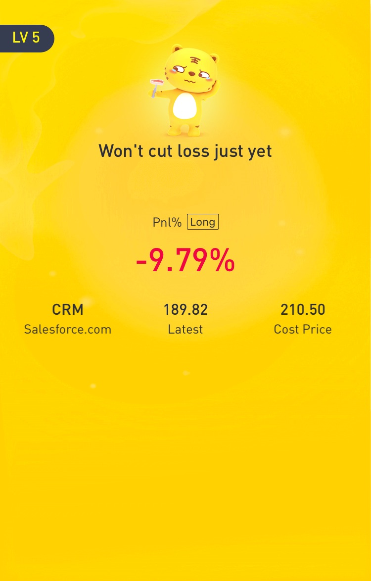 $Salesforce.com(CRM)$Recovery is slow but for sure. I kept lots of faith and bets on this. Hope it gives benefit in long run