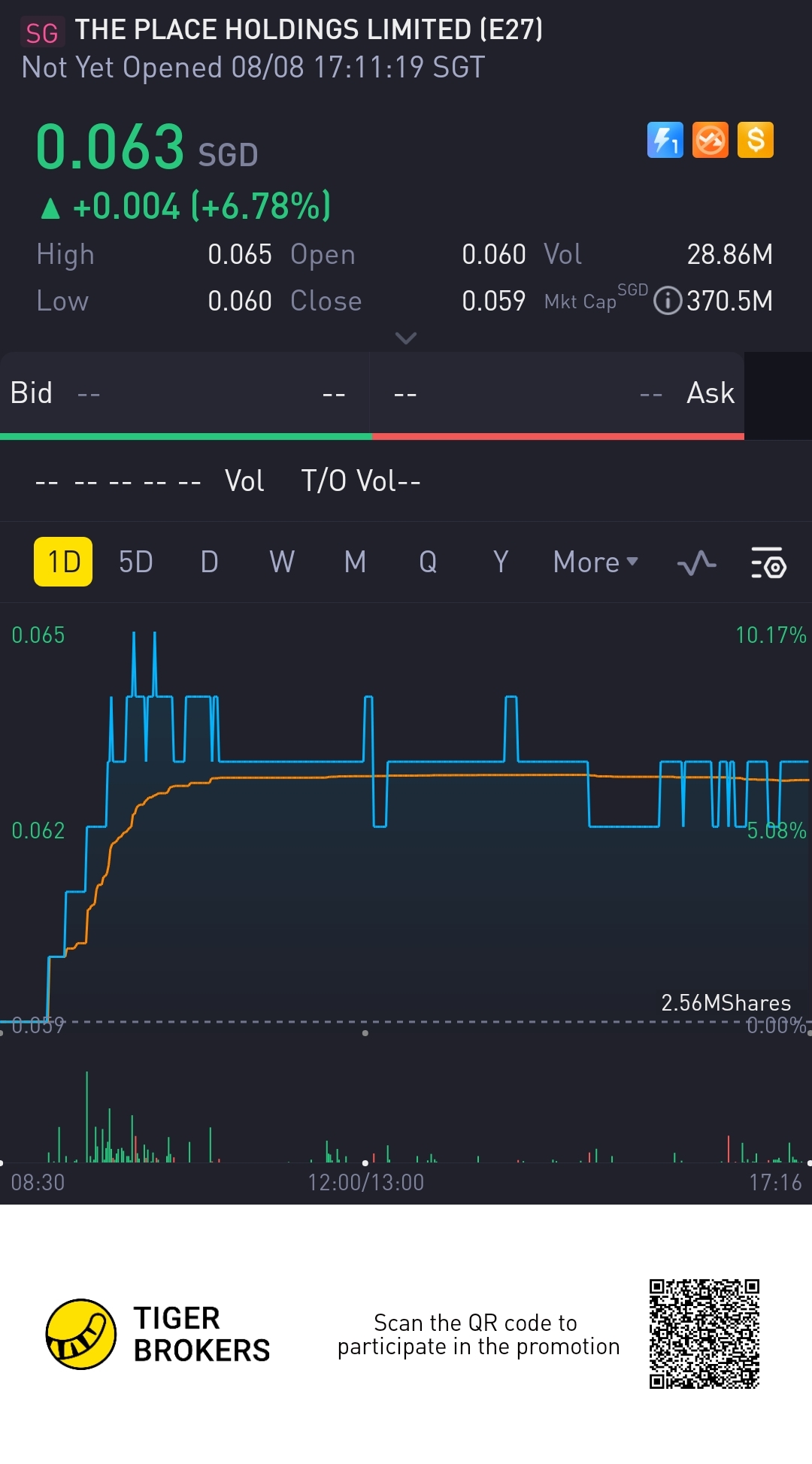 $THE PLACE HOLDINGS LIMITED(E27.SI)$ rising.