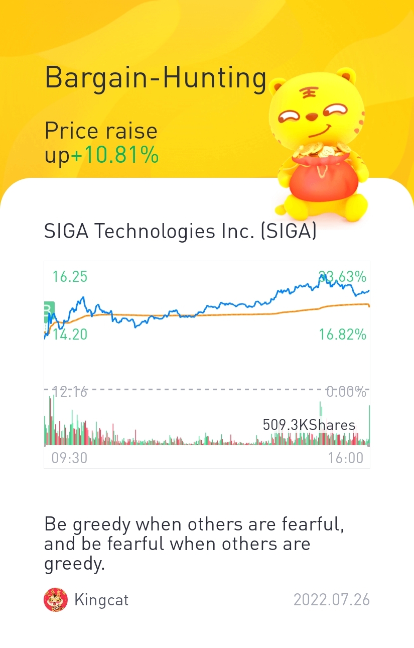 $SIGA Technologies Inc.(SIGA)$ good product, improving financials, n that dip just before WHO's announcement aligns nicely for a quick run upwards. Such companies n their meds are very much needed during these unfortunate pandemic times. Still we have to trade cautiously [Observation]