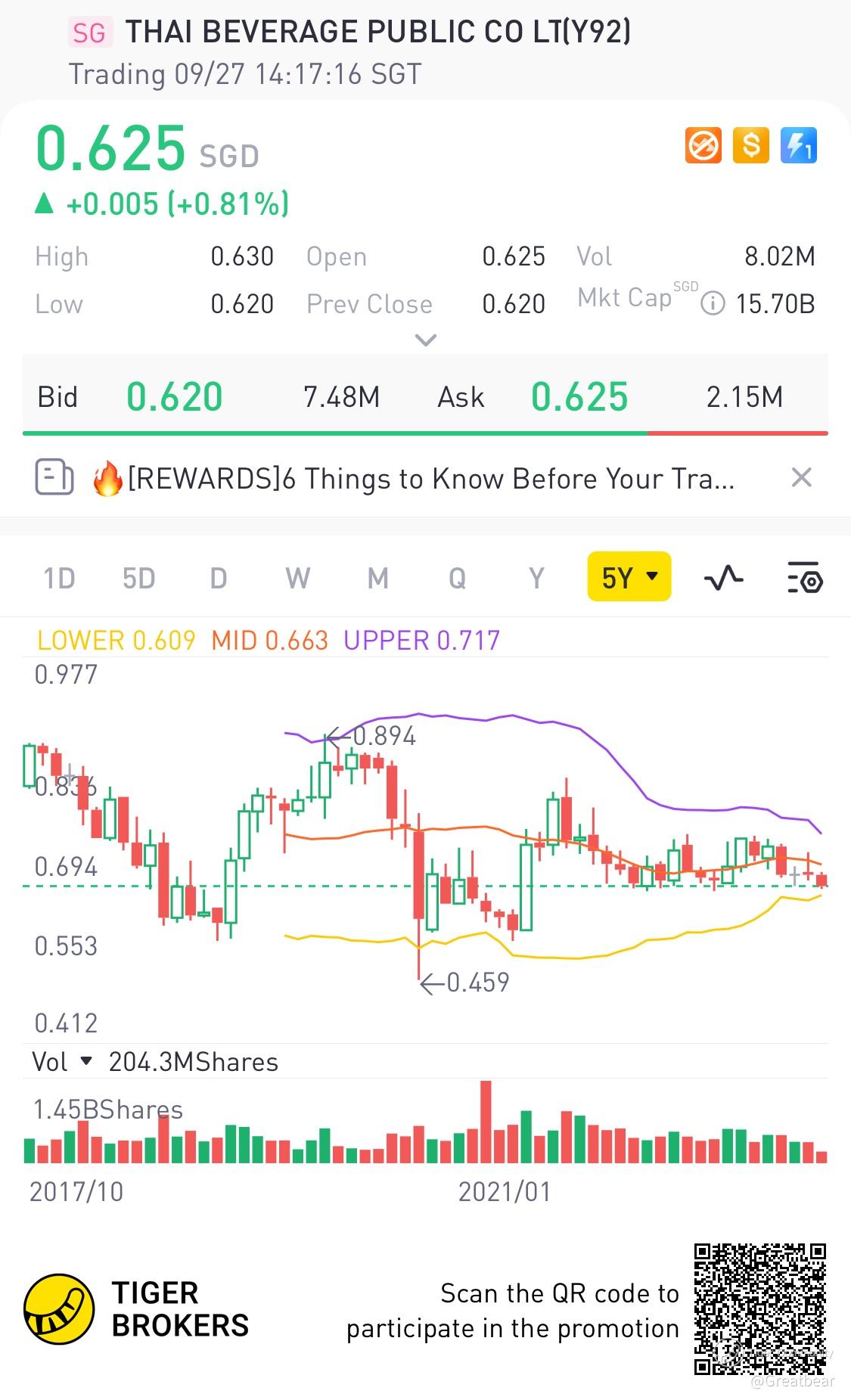 $THAI BEVERAGE PUBLIC CO LTD(Y92.SI)$up and up
