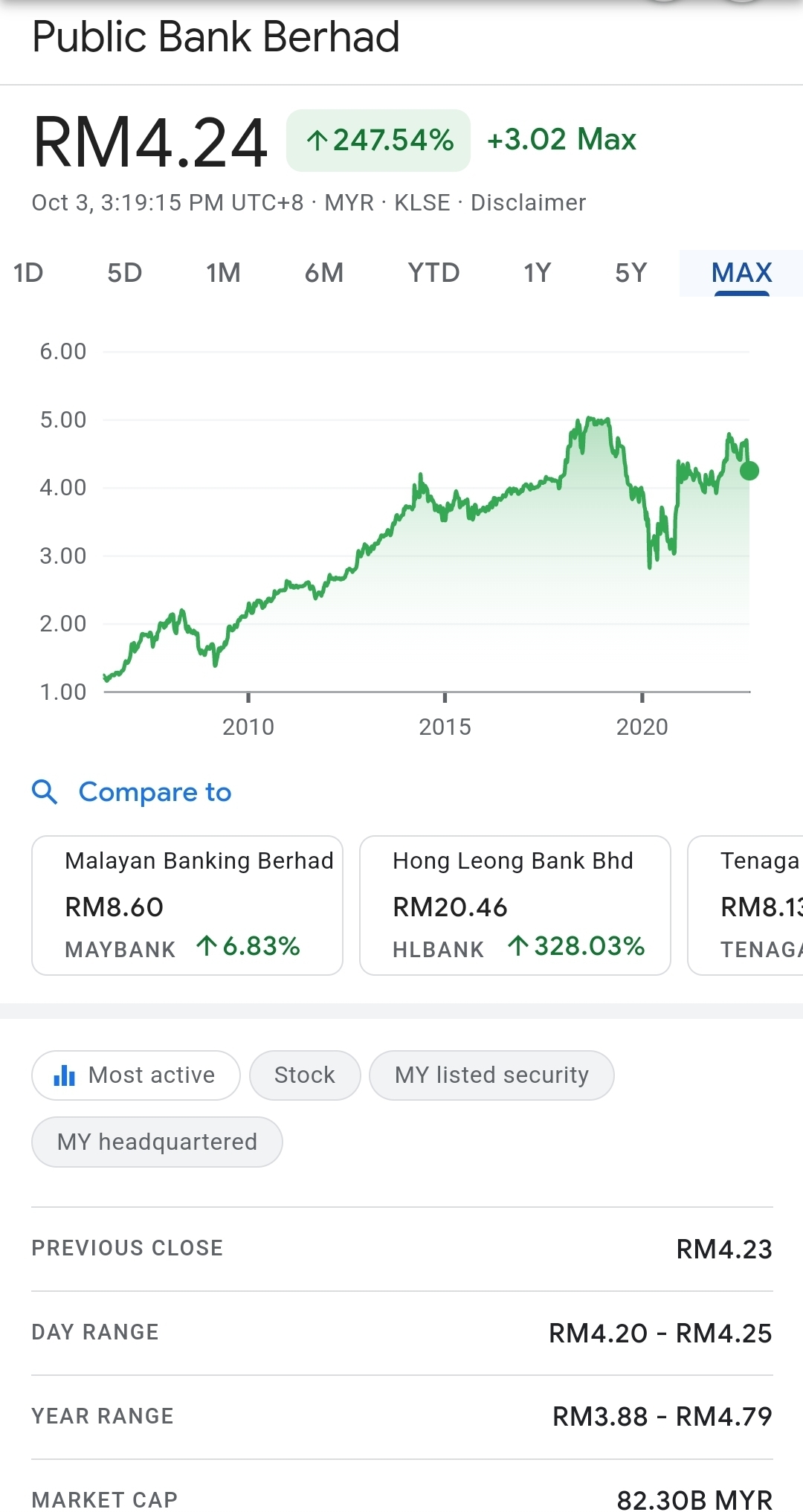 Due to my faith in PBB's management, I also have the same faith in Public Financial Limited Berhad in Hong Kong as both companies have the same founder, Mr. Teh Hong Piow.