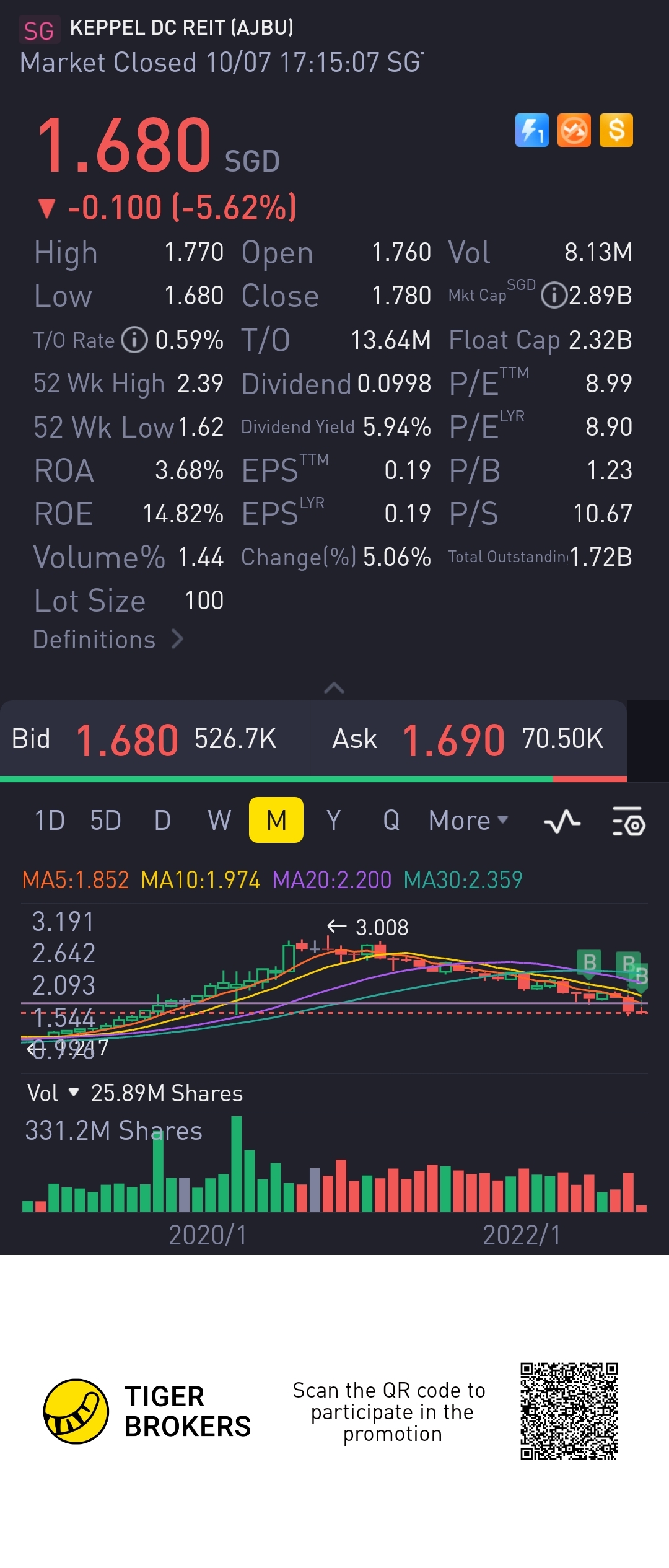 $KEPPEL DC REIT(AJBU.SI)$Time to stock up and do price averaging.