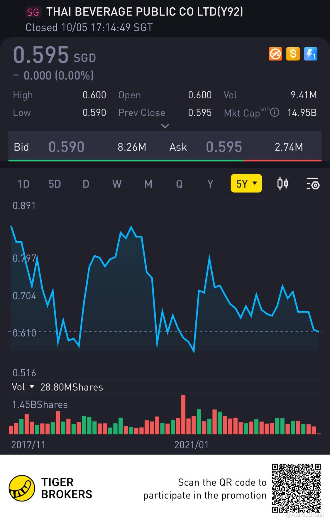 $THAI BEVERAGE PUBLIC CO LTD(Y92.SI)$💪🏻