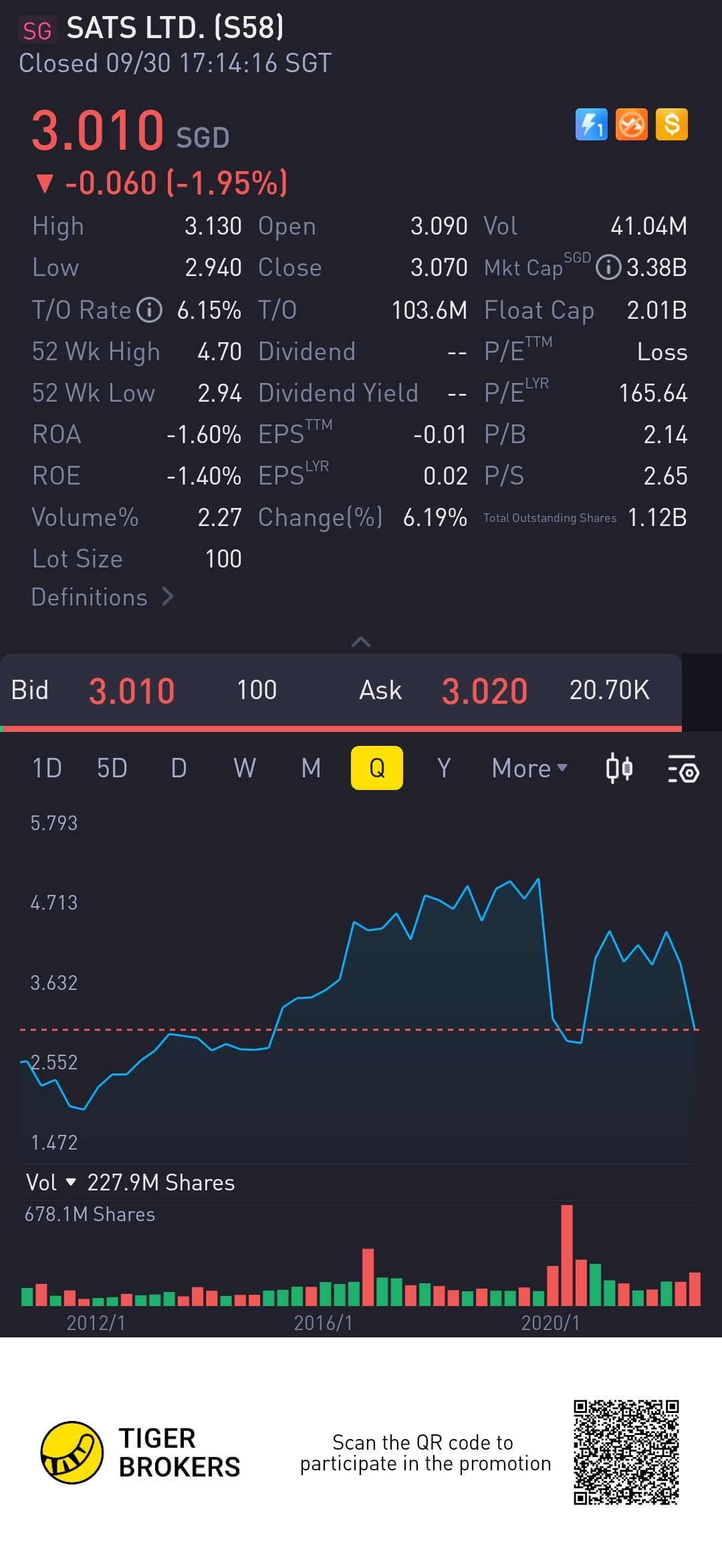$SATS LTD.(S58.SI)$ Looks like the market is still not certain on the acquisition and are still digesting on whatever details that are available at the moment.