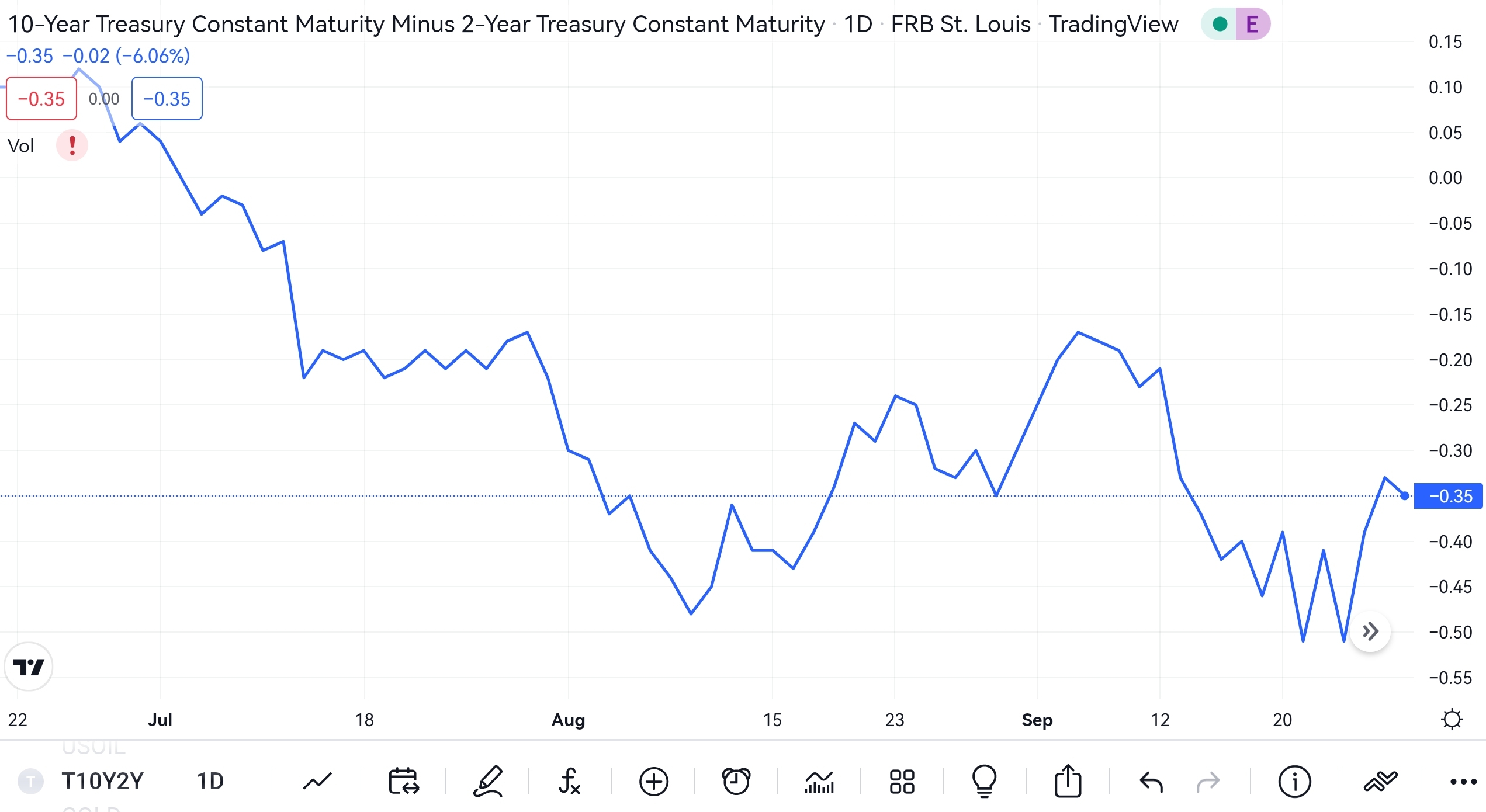 Been holding a futures pair trade (short $Micro 2-Year Yield - main 2209(2YYmain)$,long $Micro 10-Year Yield - main 2209(10Ymain)$). The rationale was 10 year yield should always be higher under Normal circumstances. In statistics world, revert to mean is expected in the long run.