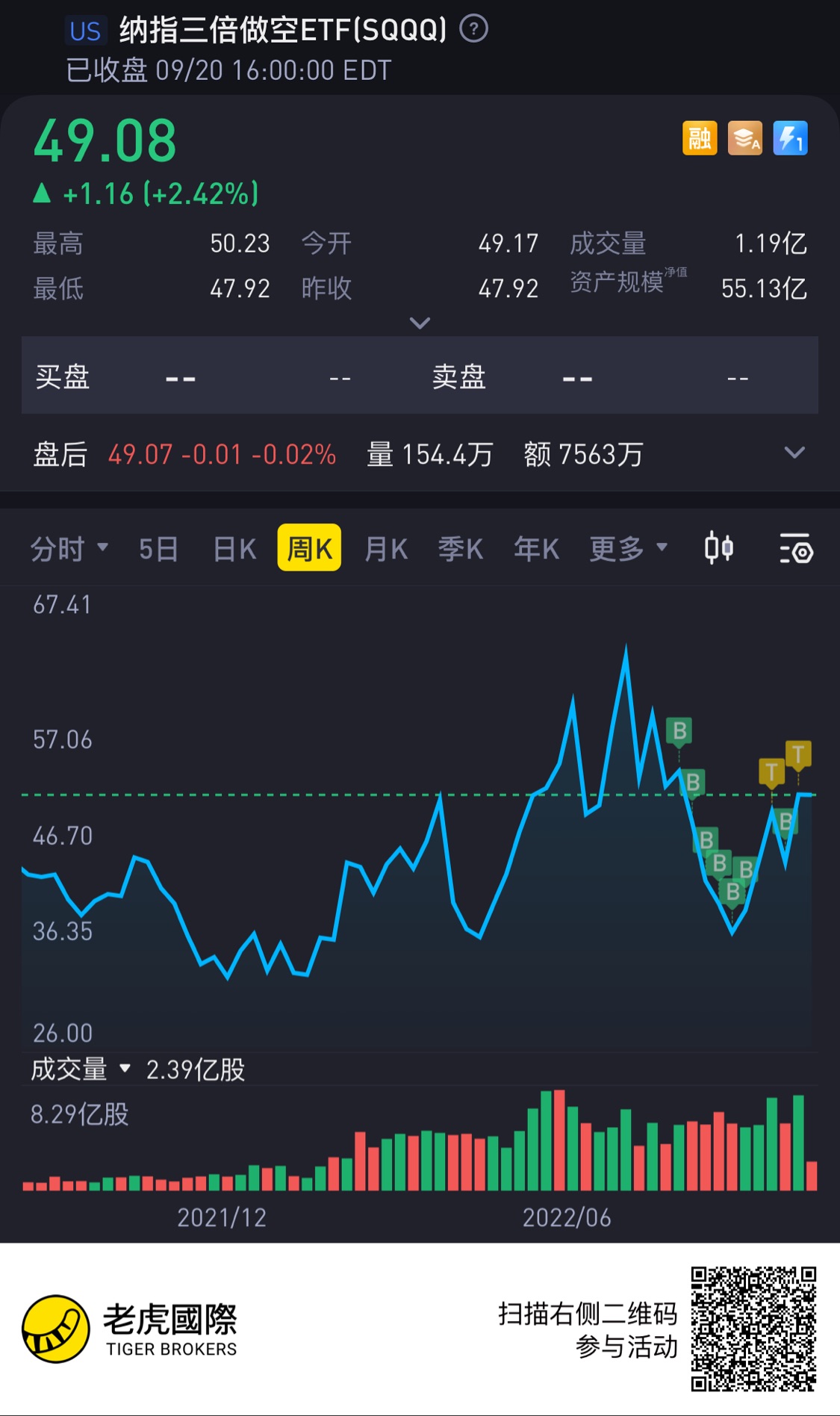 $纳指三倍做空ETF(SQQQ)$[暗中观察]