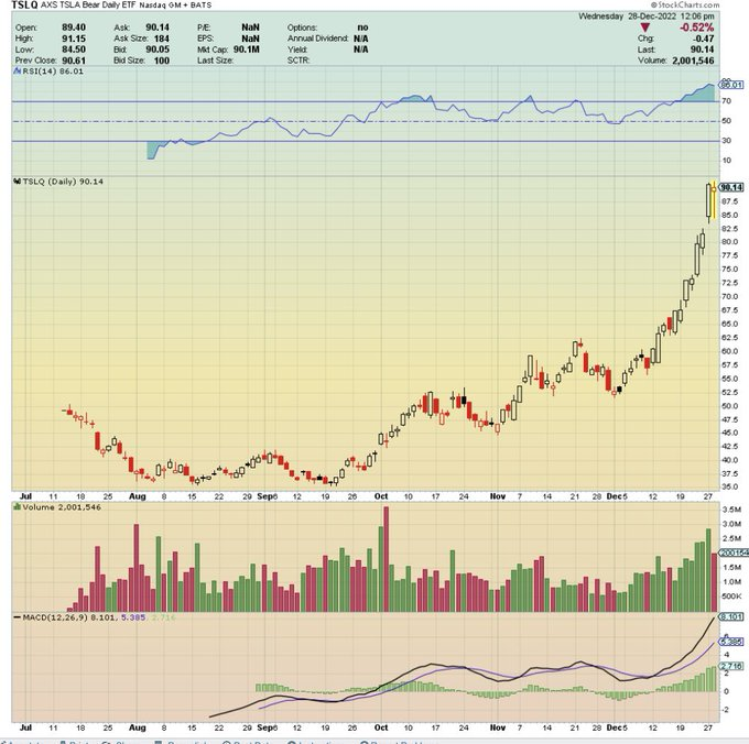 Would absolutely LOVE to know how $TSLQ $Tesla Motors Bear ETF-AXS(TSLQ)$ effects $TSLA $Tesla Motors(TSLA)$ stock. A lot of derivatives get bought to power this thing, and volume keeps rising. Interesting.