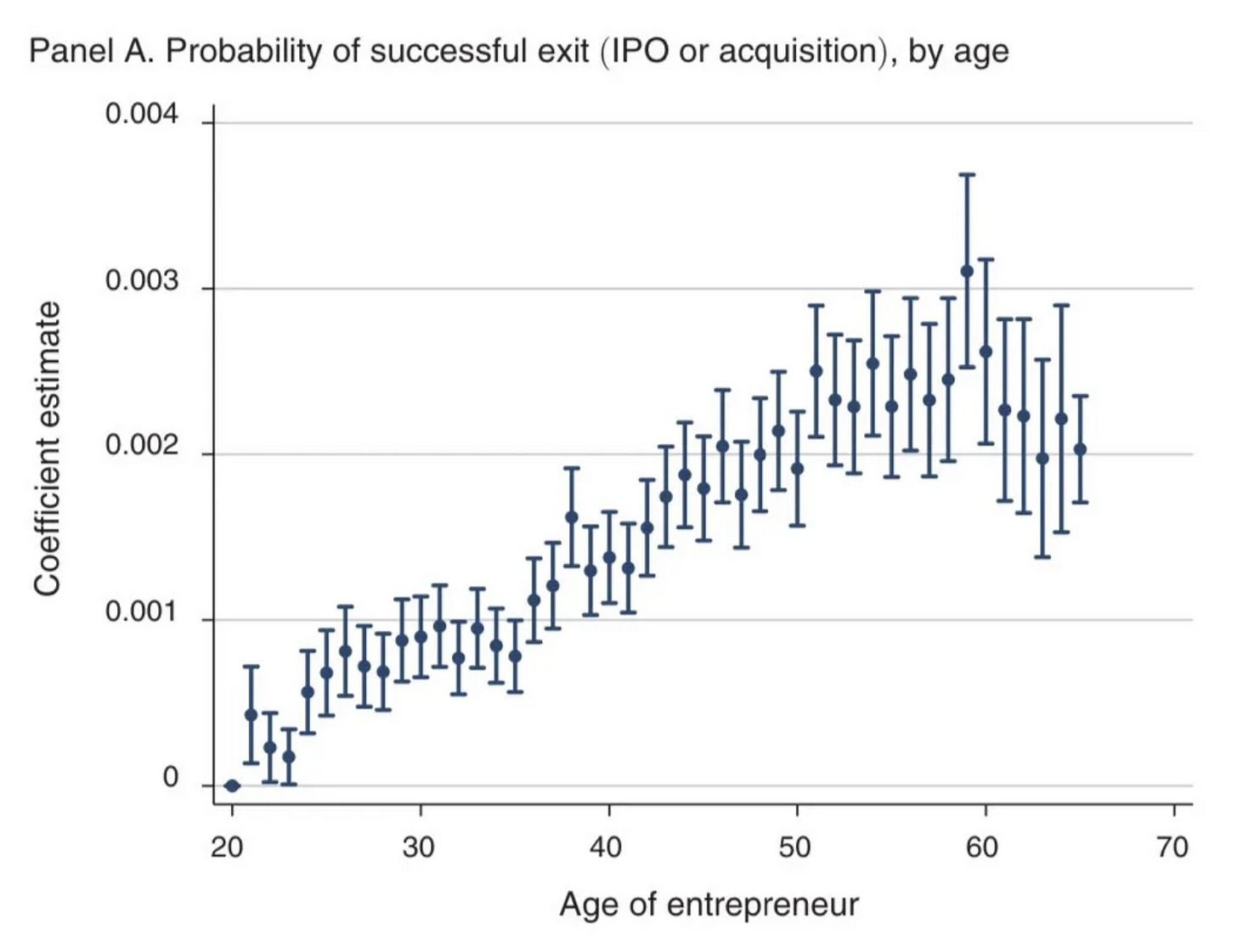 Interesting further food for thought on founders... "the older you are, themore likelyyou are to succeed as a startup founder" (sweet spot seems to be 50's). Not only is it never too late to start, it might even be better to start later.