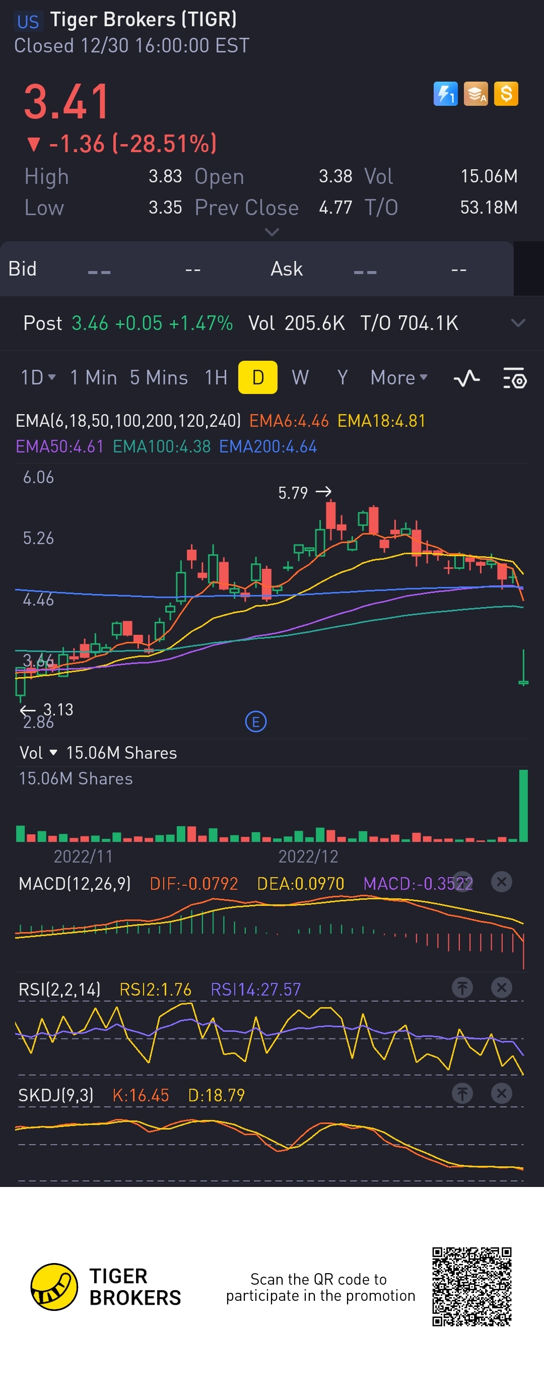 $Tiger Brokers(TIGR)$ Anyone have any ideas why the sudden plunge in Tiger share. Unusual for it to have moved down so much. Scary [Doubt] [OMG] [Blush]