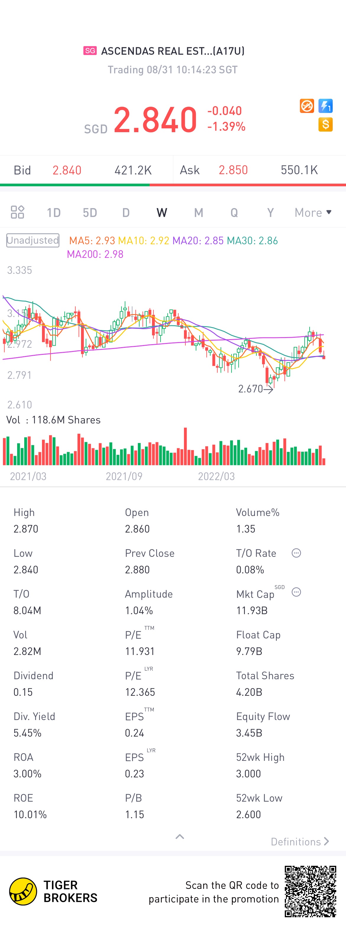 $ASCENDAS REAL ESTATE INV TRUST(A17U.SI)$Past few weeks have been red. Is the bottom already in? [Thinking]