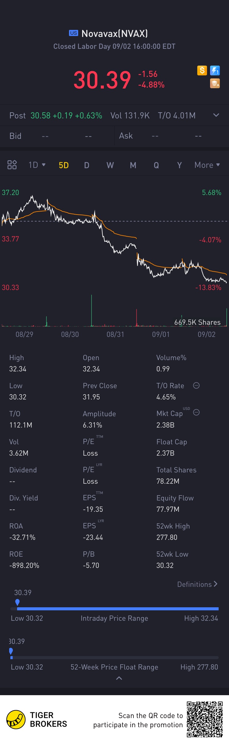 $Novavax(NVAX)$So it has reached the lowest price in 52 weeks. It is approved for children 12-19 and more approval in many countries. So what is the conviction? Do you think it will be bearish? I kinda of lose hope on this one [Cry]