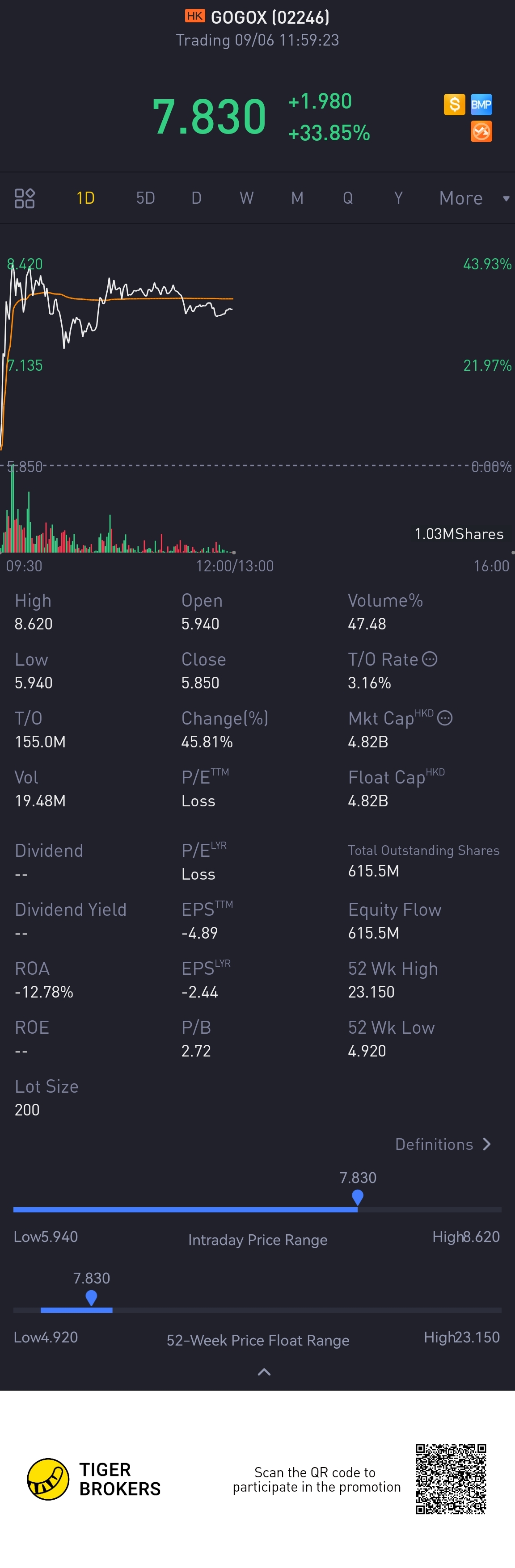 $GOGOX(02246)$GOGOX share is moving up a lot during the trade in morning time before Federal Reserve Chairman Powell want to hike 50bps or 75bps interest rate in Sept 2022..