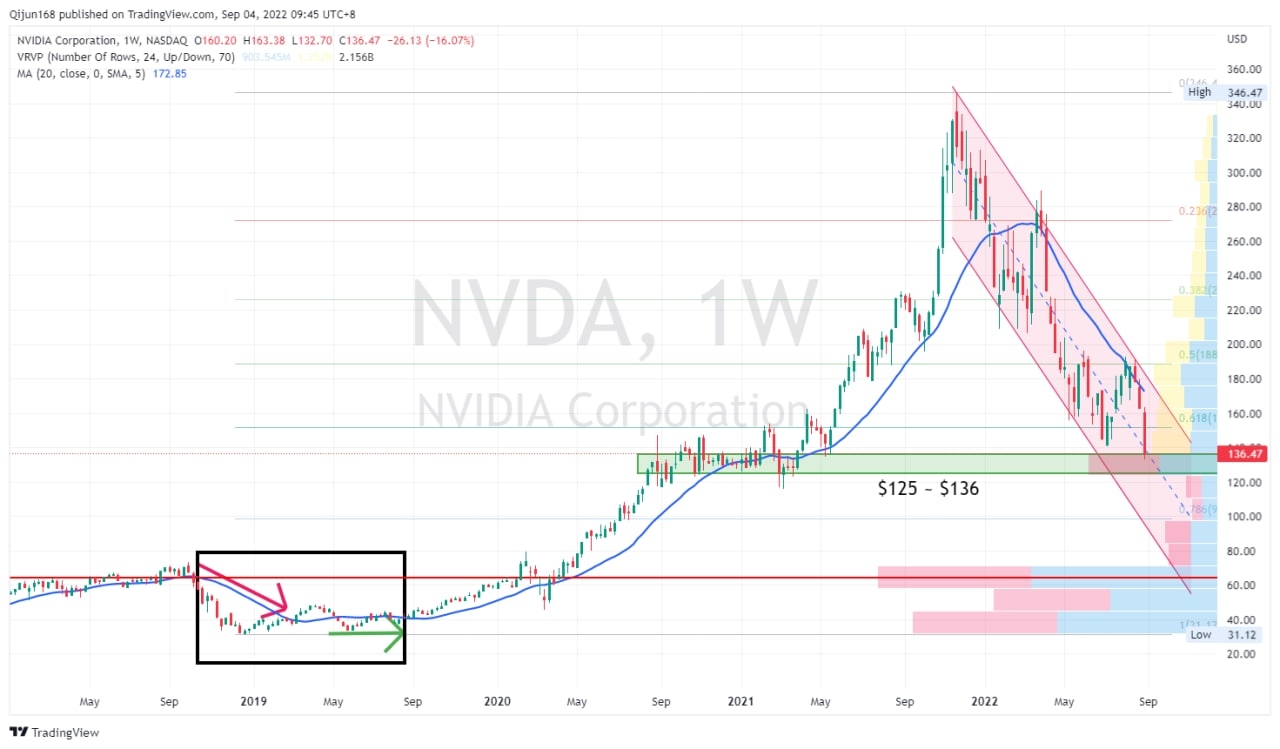 From Volume Profile, immediately $125 ~ $136 appears to be a support zone (much more volume traded than surrounding yellow/blue & red/blue bars