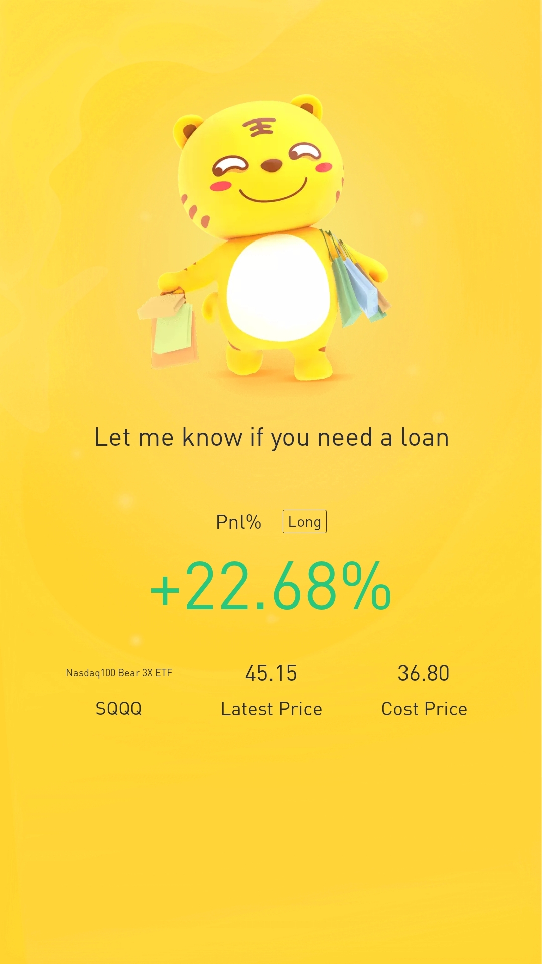 $Nasdaq100 Bear 3X ETF(SQQQ)$SStill holding it.[love you]