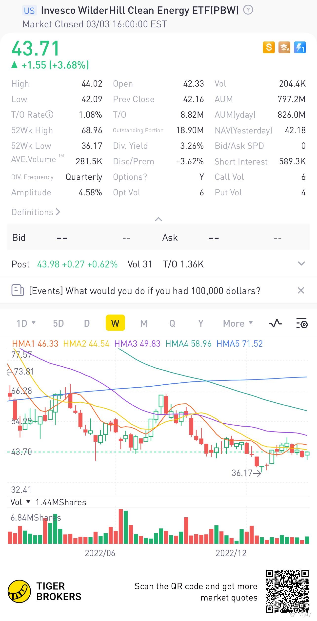 $Invesco WilderHill Clean Energy ETF(PBW)$ Sustainable energy stock... green world
