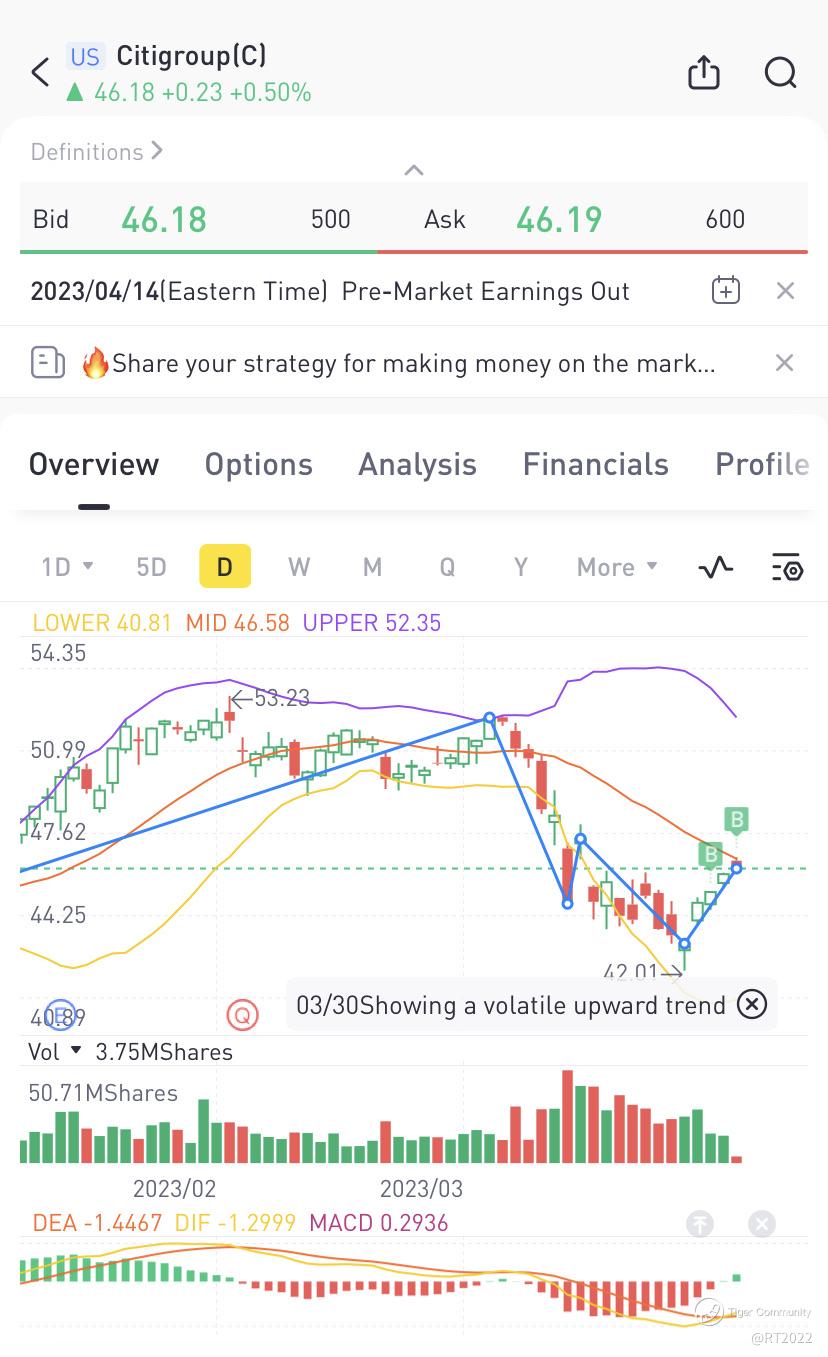 $Citigroup(C)$ look like time to add to lower my cost, since already start to going up. Come on Citibank !