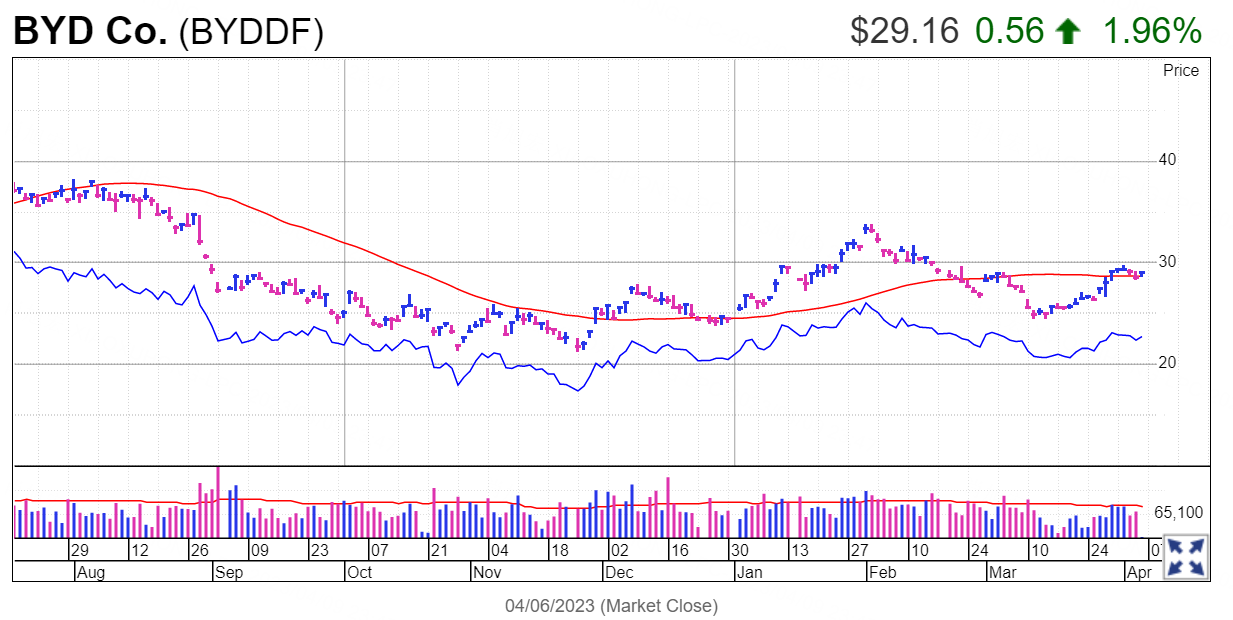BYD stock is up decently in an up-and-down year, facing resistance that could offer an aggressive entry.
