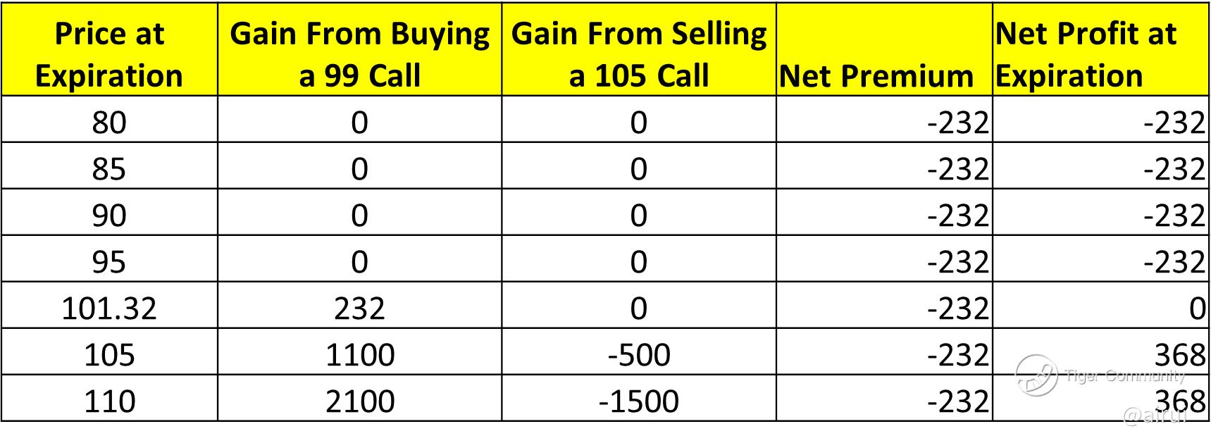 If the stock price rose above 105, I would earn a maximum of $368. (excluding transaction costs)