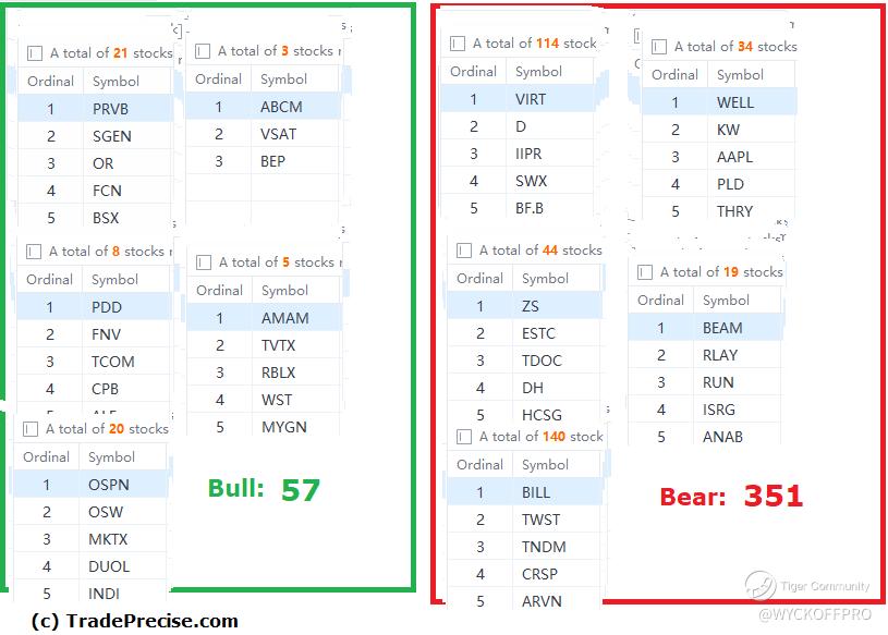The bullish setup vs. the bearish setup is 57 to 351 from the screenshot of my stock screener below pointed a flip in the market sentiment to bearish.