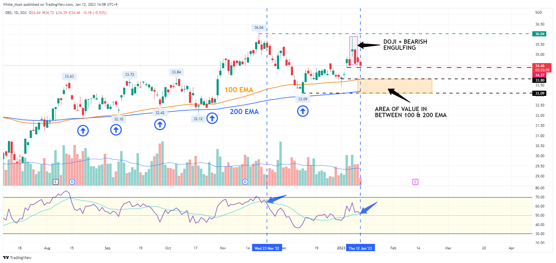 As price has respected 200 EMA since Aug 2022. Look out for area of entry in between 100-200 EMA at around $33.09-33.80. Good Luck!