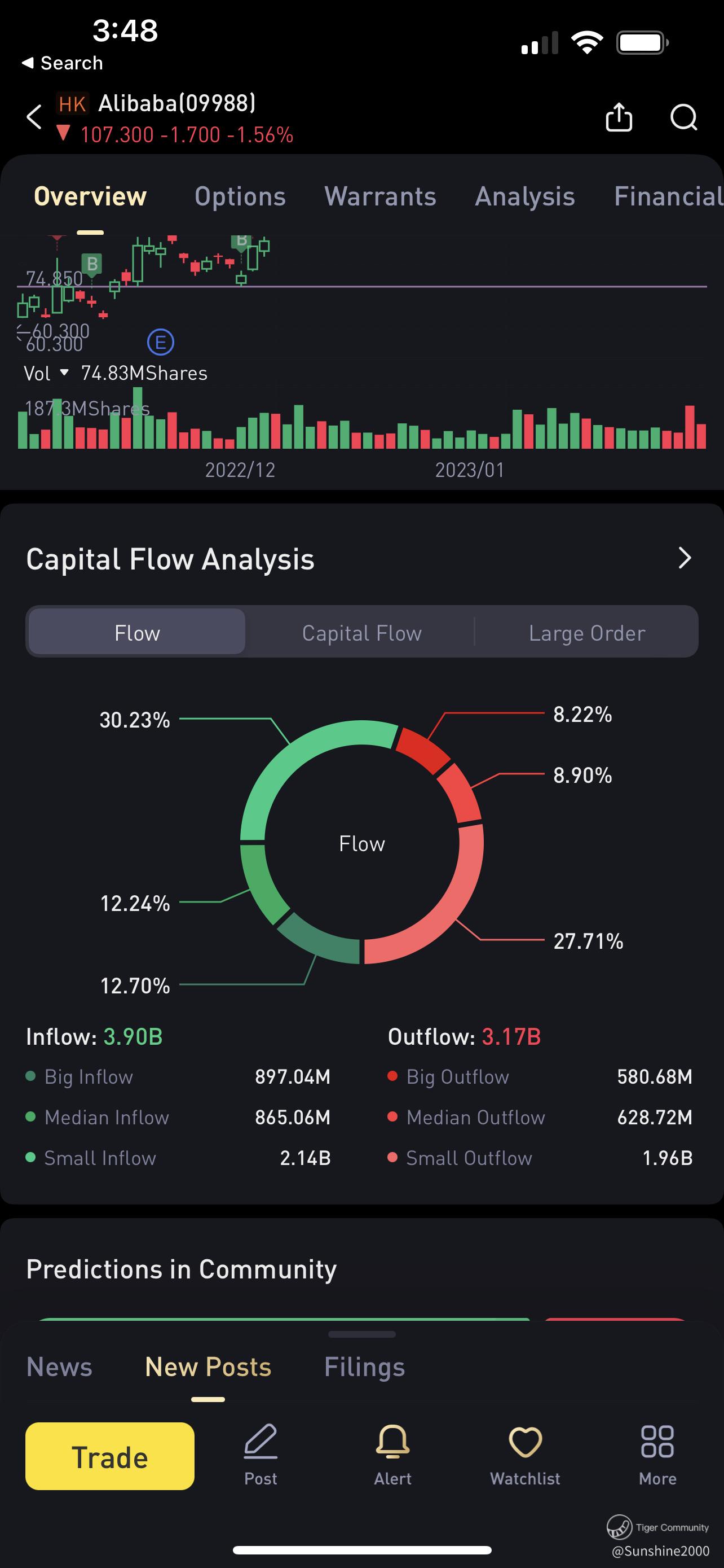 $Alibaba(09988)$ big inflow 863m big outflow 565m ... overall net amount is + 625.1m.