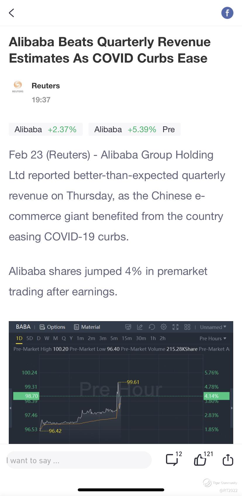 The king is $Alibaba(BABA)$ better than expected quarterly revenue ! Jiayou ! China opening up, support by good platform will improve export tremendously