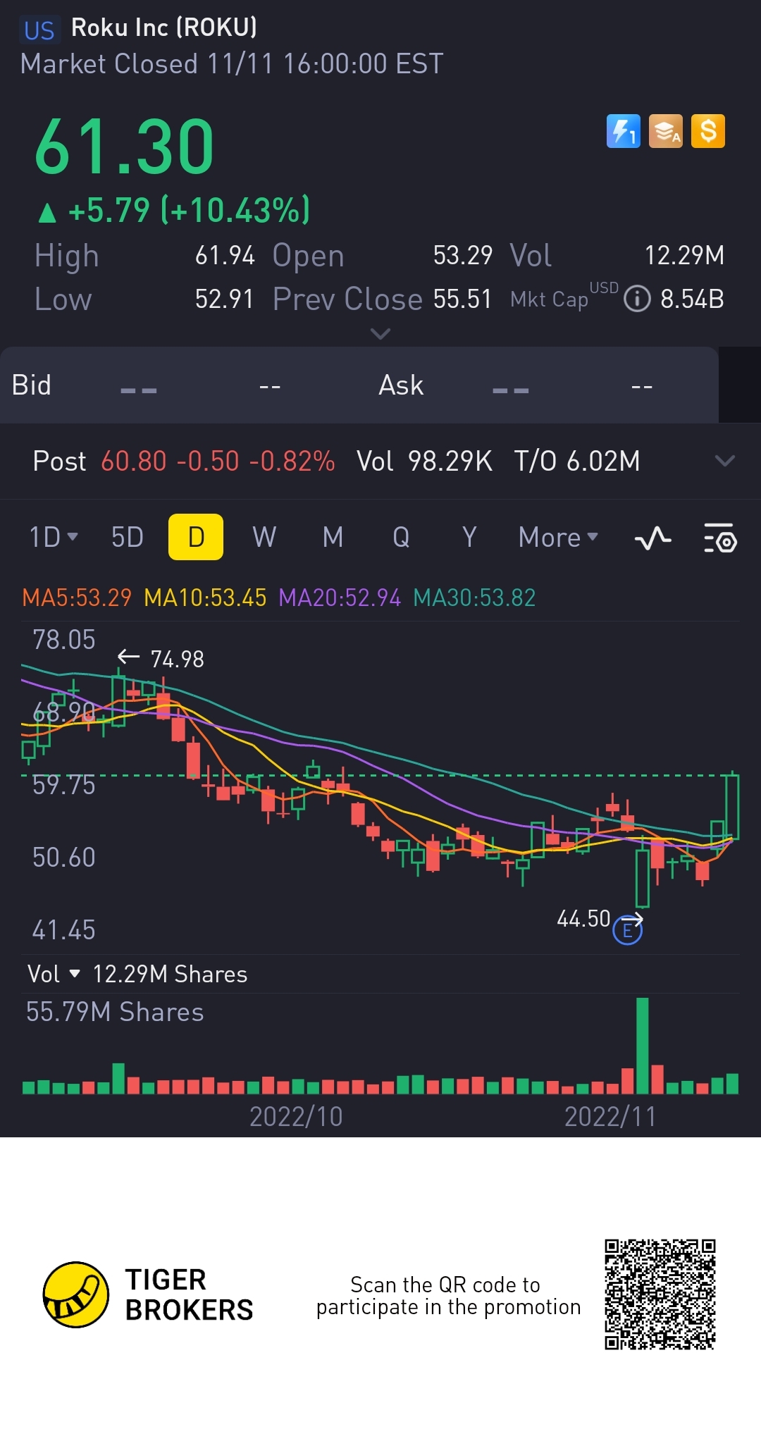 $Roku Inc(ROKU)$ likely to test 65 marks next week, off load if you have shares stuck at this position like me