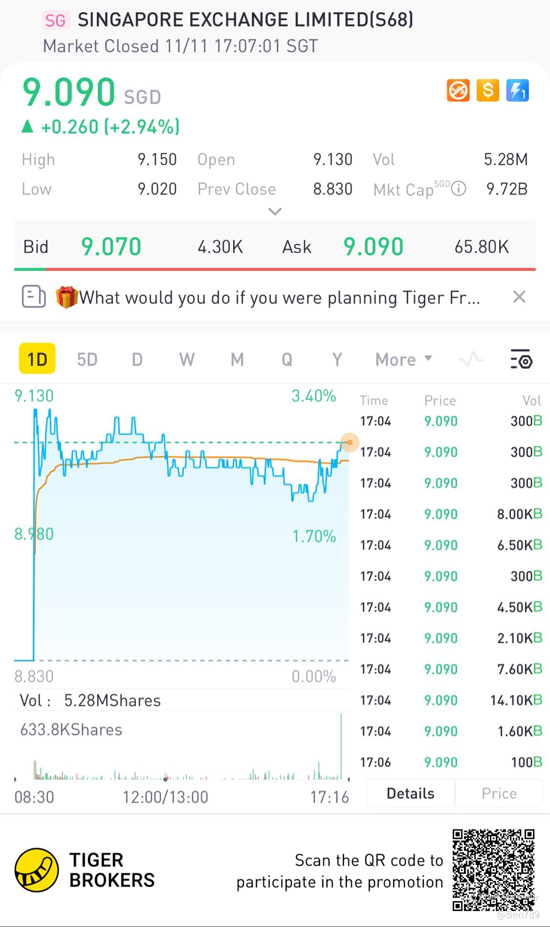 $SINGAPORE EXCHANGE LIMITED(S68.SI)$ Singapore Exchange's business growth may stay muted in FY 2023, RHB Research analyst Shekhar Jaiswal says in a research report.
