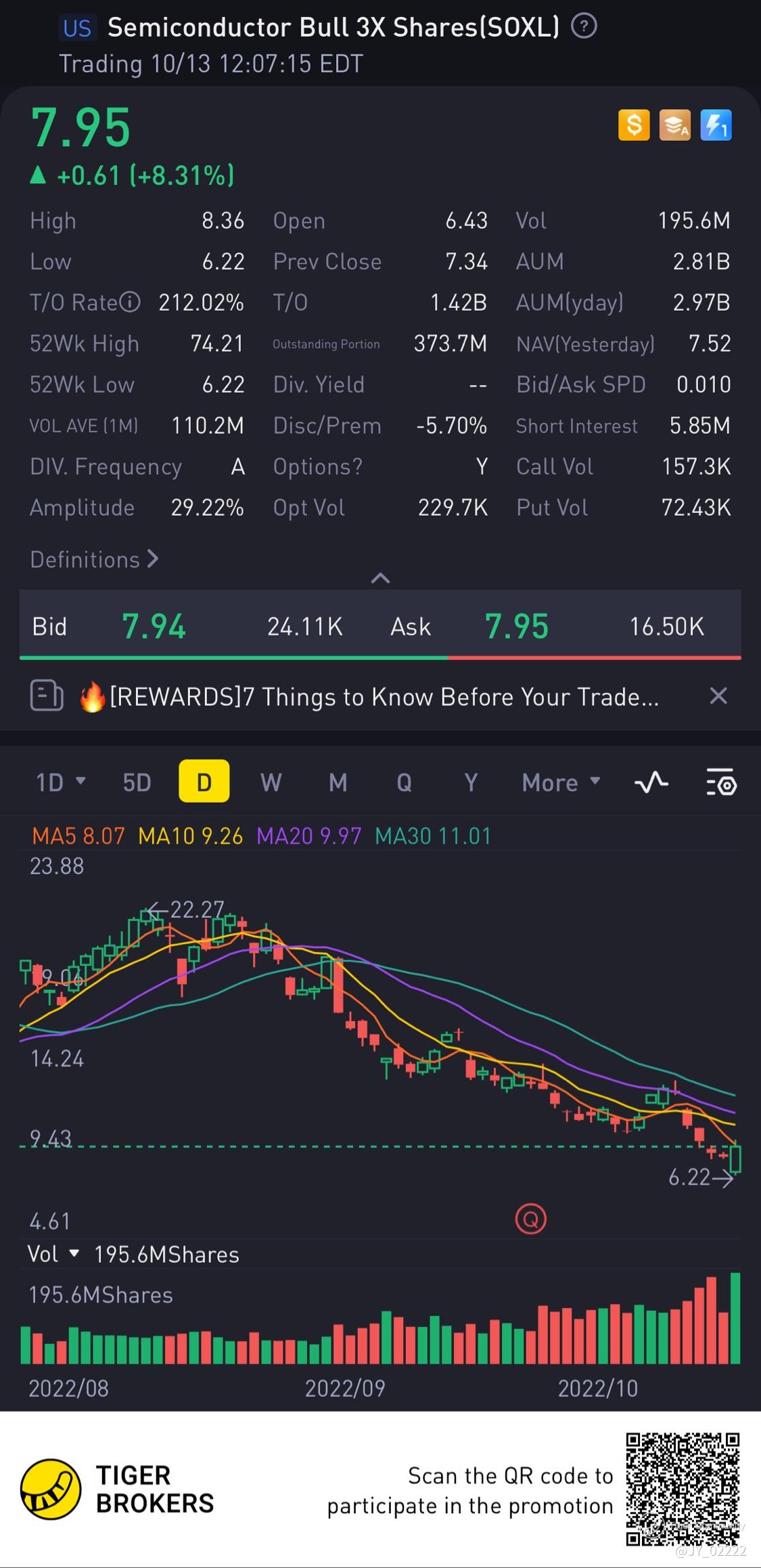 $Semiconductor Bull 3X Shares(SOXL)$I'm going to be a little bit later than usual so I'll see if we can get there around five or so and I'll just go ahead with the rest and get the rest and I'll let you guys decide when I'm there so we don't get to go out to dinner