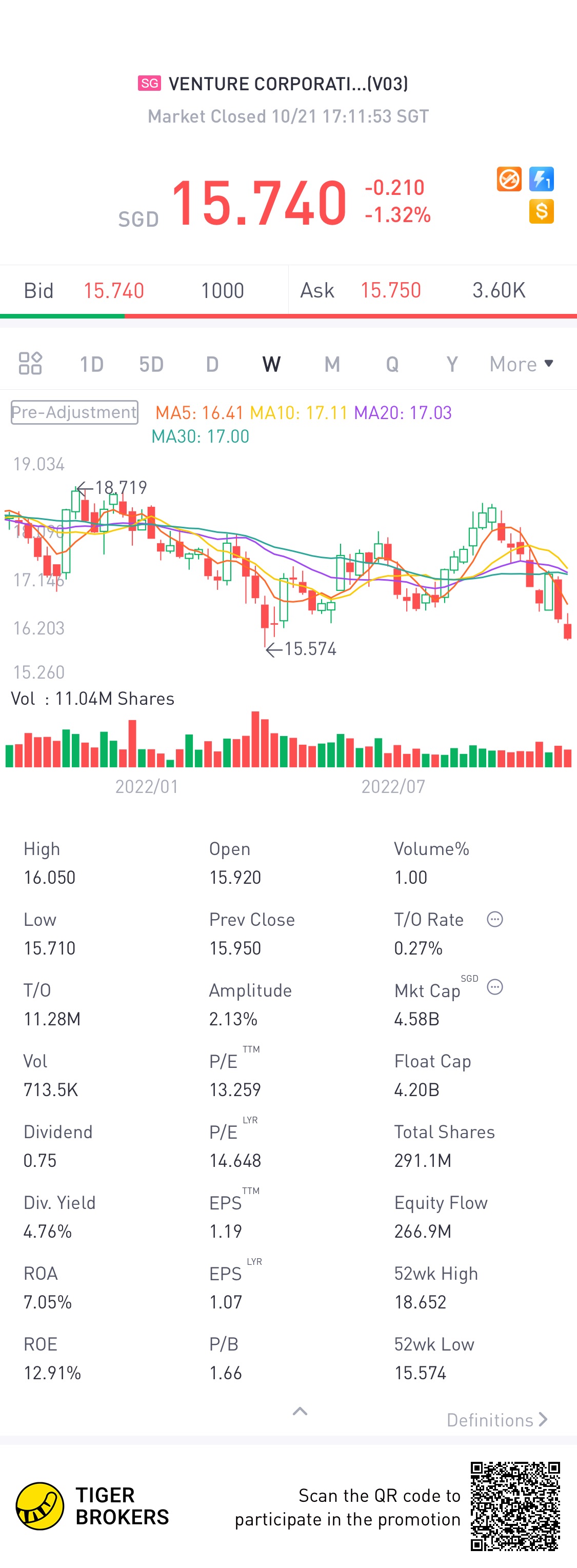 $VENTURE CORPORATION LIMITED(V03.SI)$Drop so much to my buying price, keep for dividend
