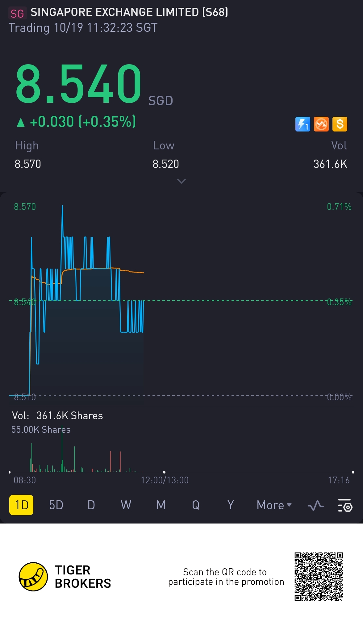$SINGAPORE EXCHANGE LIMITED(S68.SI)$ up?