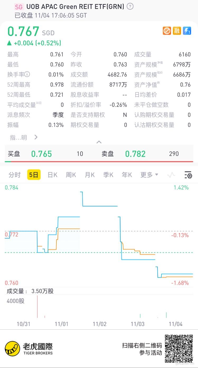 $UOB APAC Green REIT ETF(GRN.SI)$[开心]