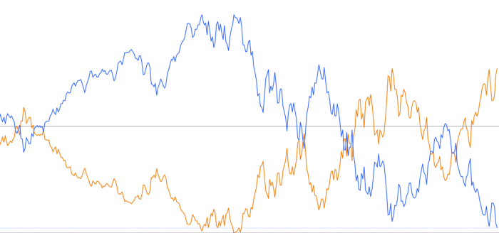 The orange line is the PSQ ETF and the blue line is the QQQ ETF.