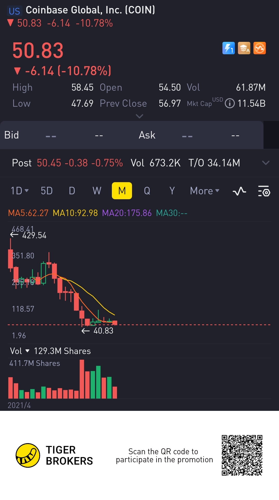$Coinbase Global, Inc.(COIN)$  bottom?