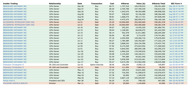 The company bought all of the previous shares since March in the $50 price range. Amazingly, Oxy hasn't traded below $60 for many days since March, yet Berkshire has repeatedly bought millions of shares on the dips without needing to pay up.
