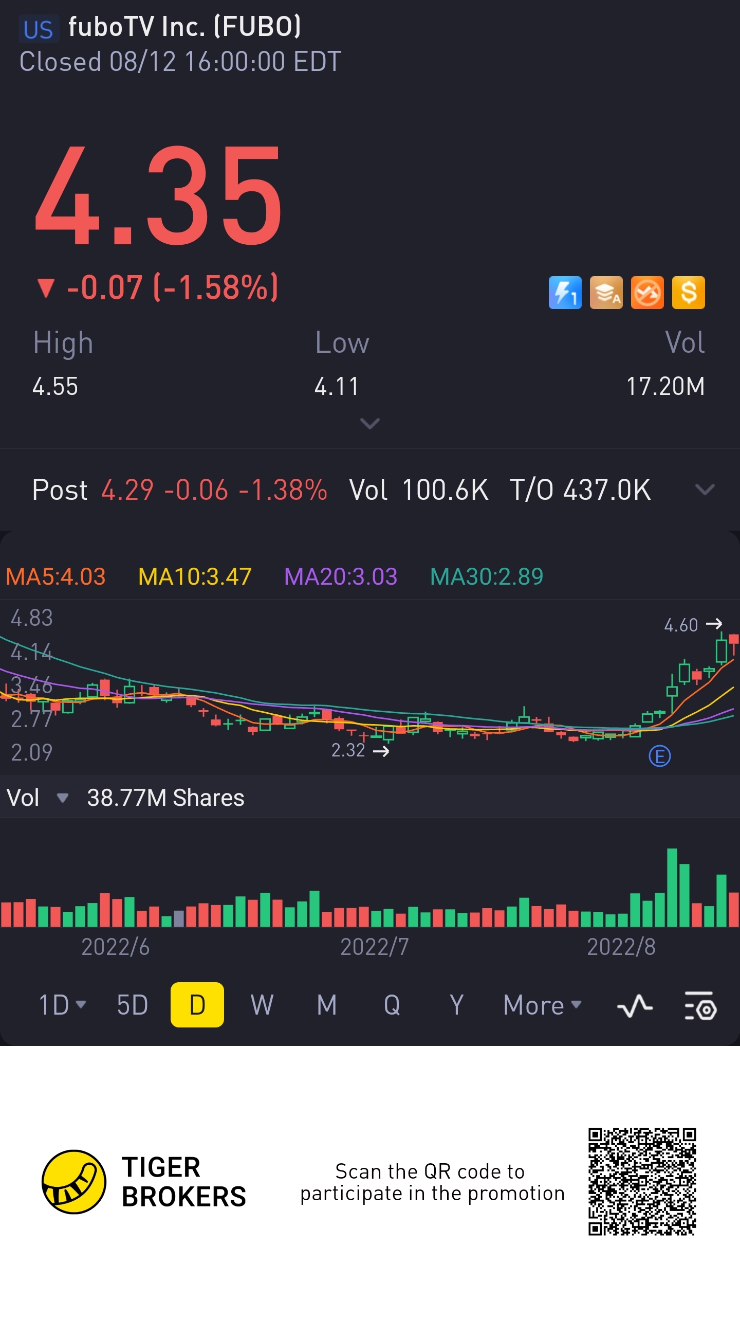 $fuboTV Inc.(FUBO)$share
