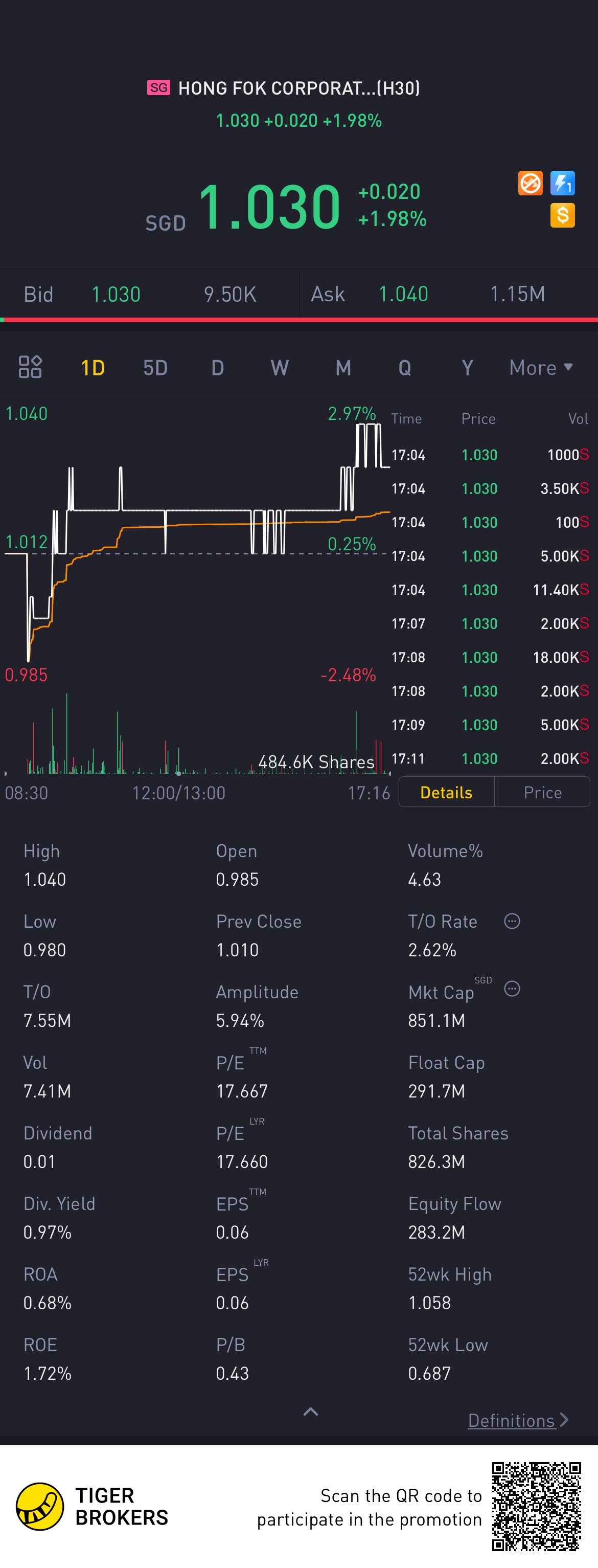 $HONG FOK CORPORATION LTD(H30.SI)$Let's see if it can Chiong to $1.1 this time round [Miser] [Miser]