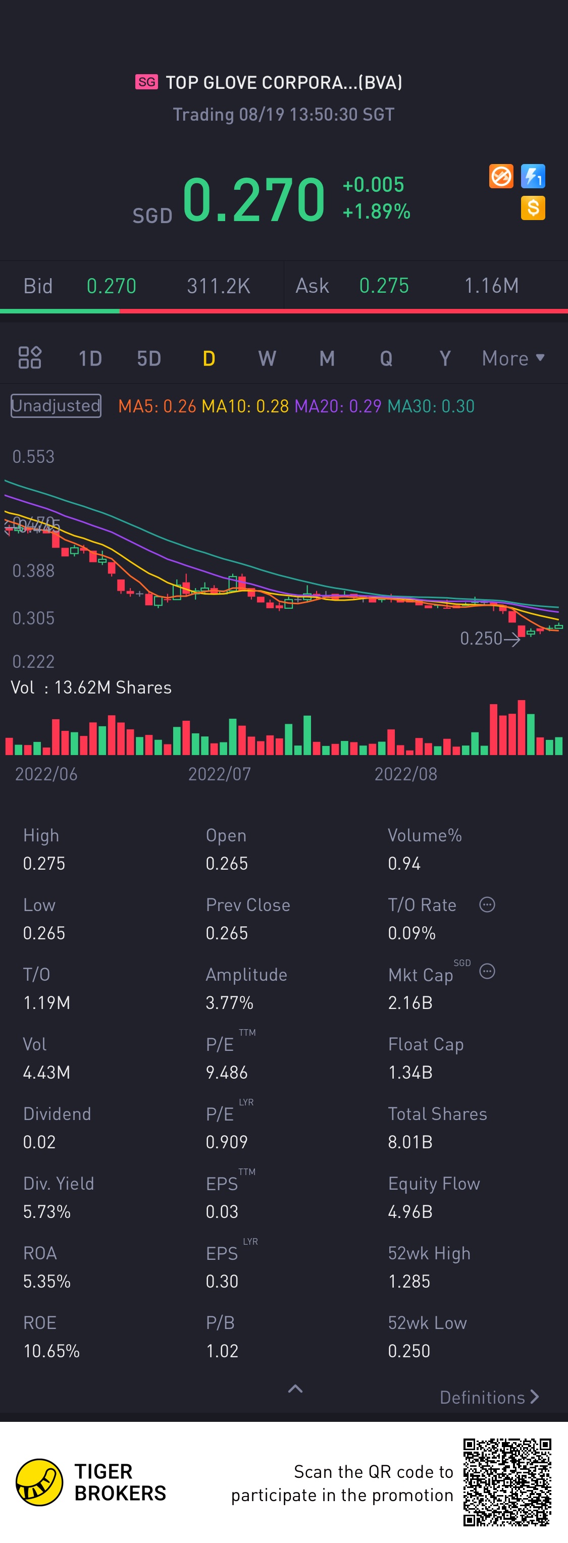 $TOP GLOVE CORPORATION BHD(BVA.SI)$Low and Low .. can all on ??