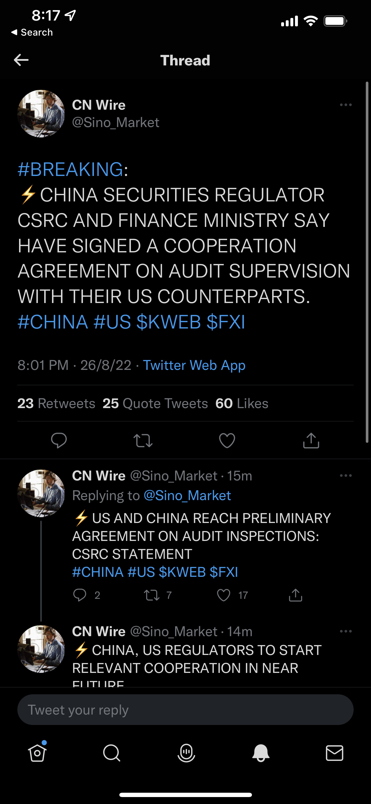 $Tiger Brokers(TIGR)$BullishChina and US has reached a deal and signed a cooperation agreement on audit supervision. If this is not the time to buy, even if it's a for swing trade, you might be losing out. GLTO!