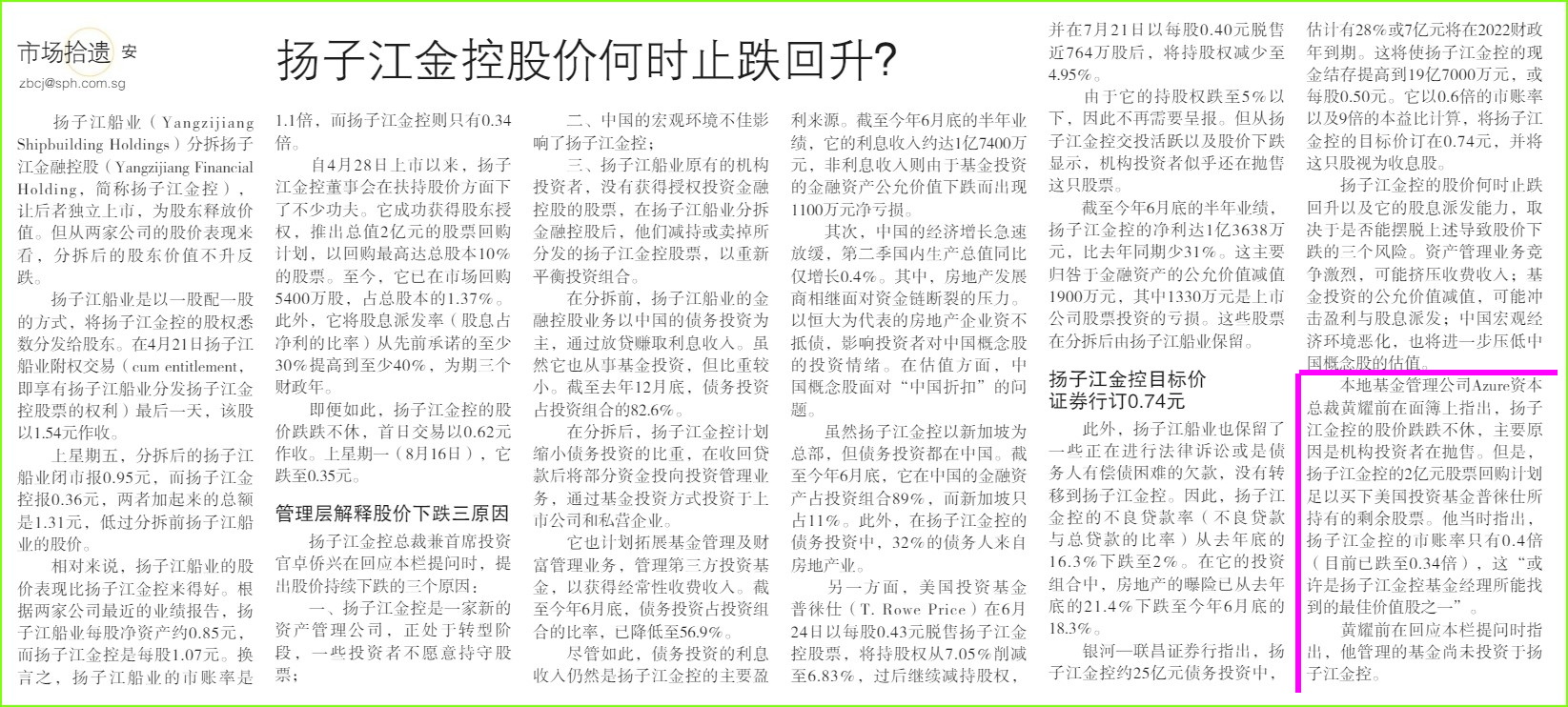 $YZJ Fin Hldg(YF8.SI)$Interestingly, YF8 was reported both in today's ZaoBao and BT. I have highlighted the paragraphs which I think are intriguing to me. Technically, a breakout upwards at 39 cents would be more of a convincing reversal from recent low. Pardon me for those who couldn't read Chinese. Ps