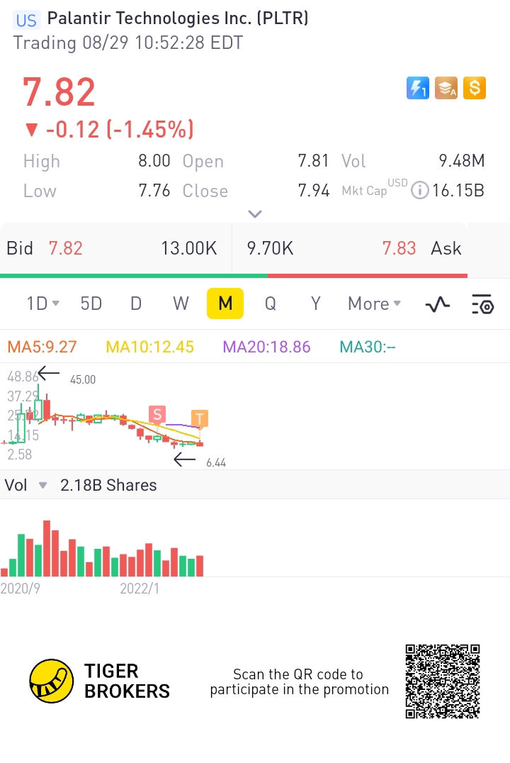 $Palantir Technologies Inc.(PLTR)$this session will hit to 7.55 to 7.65 range... This is mypromise to my faithful followers! Dont fall trap by those YouTuber clowns.... Burn ur cashes.... Loss big time....