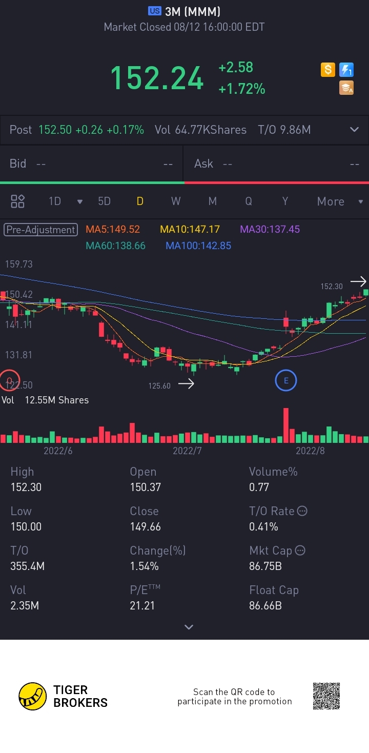 $3M(MMM)$Dividend: 1.49 (Q3 2022)