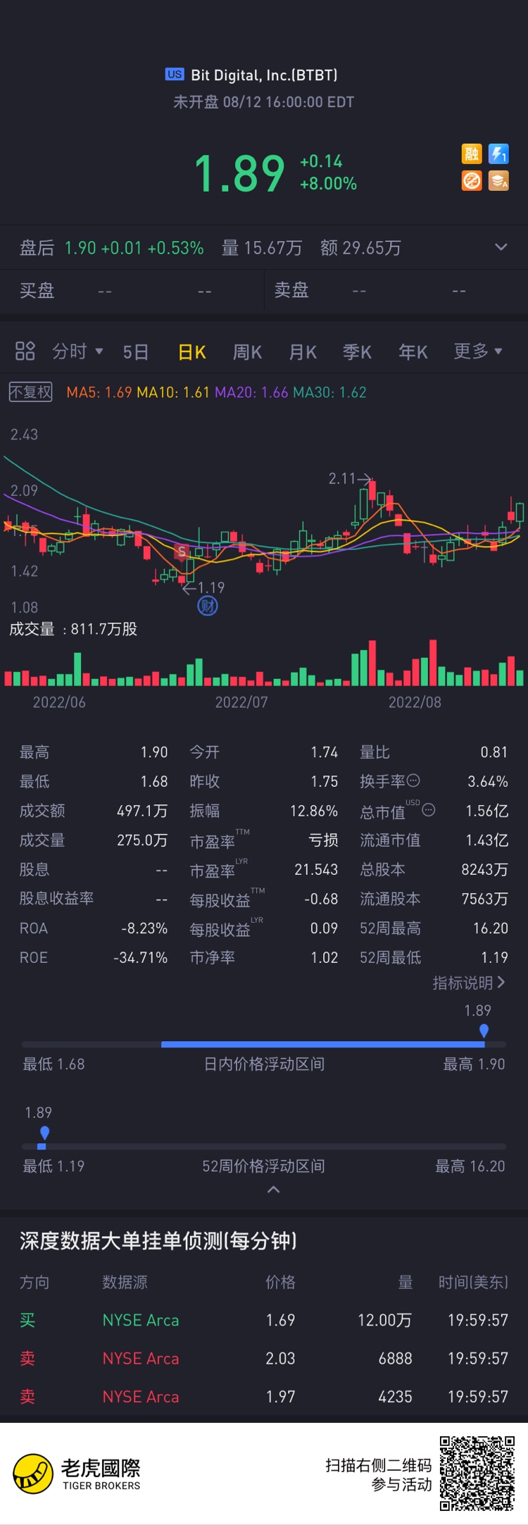 $Bit Digital, Inc.(BTBT)$👍🏻