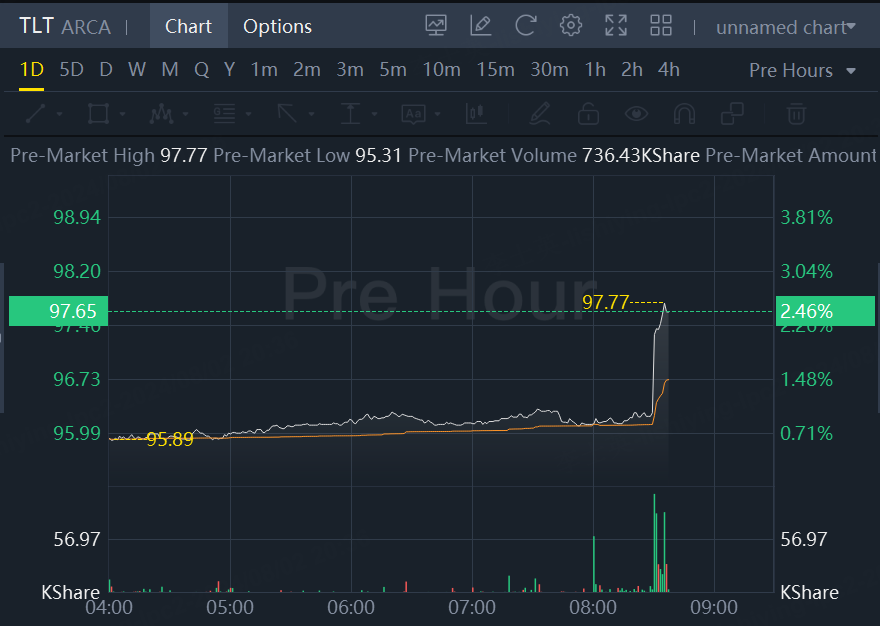 iShares 20+ Year Treasury Bond ETF jumped 2.5% in premarket trading.