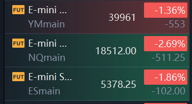 Dow Jones Industrial Average futures lost 553 points, or 1.4%. Futures tied to the S&P 500 fell 1.9%, and Nasdaq 100 futures dropped 2.7%.