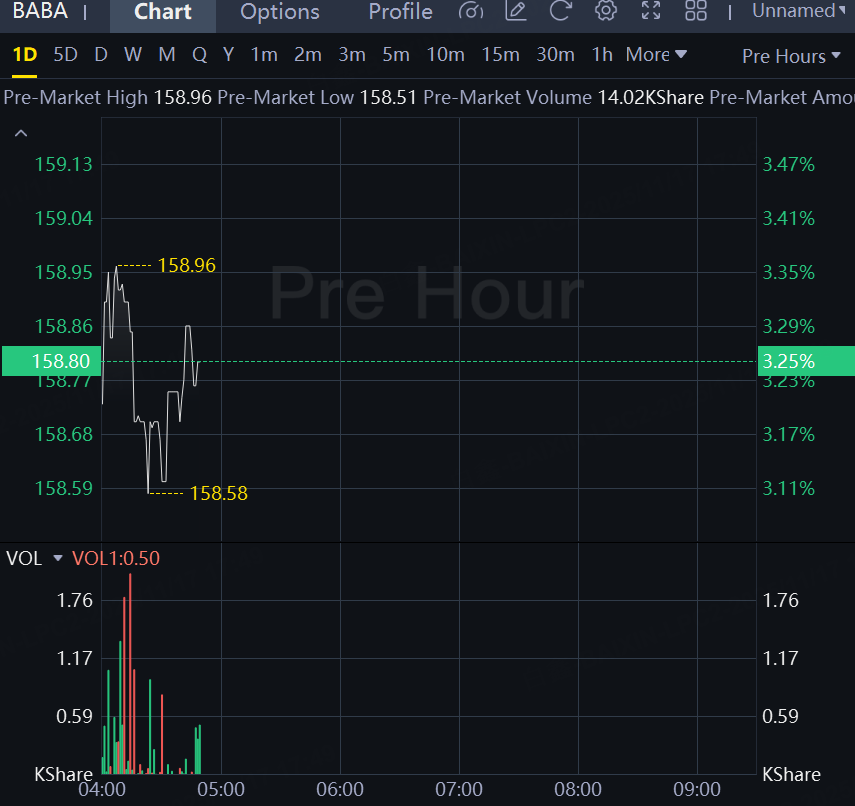 Alibaba shares rose 3% in premarket.