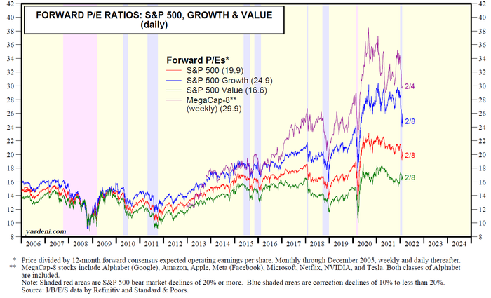 Yardeni thinks the S&P 500 will be up 7% by year-end, with plenty of buyable dips at least through midyear. He projects 15% gains in the S&P 500 by mid-2023.